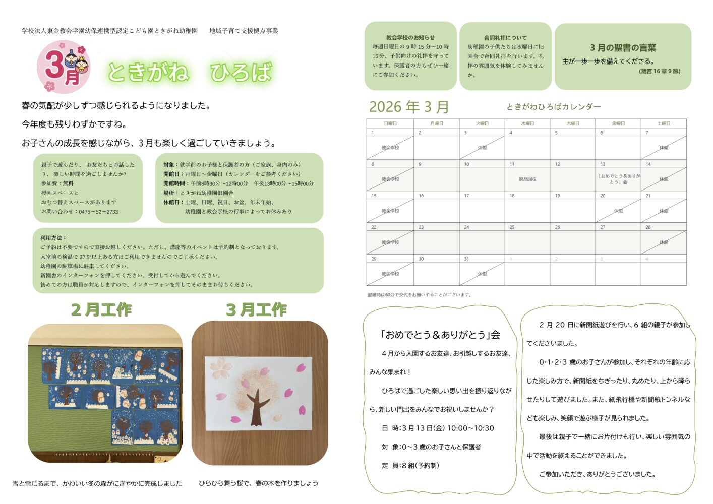 3. ときがねひろば 2026年3月開館案内(たより)